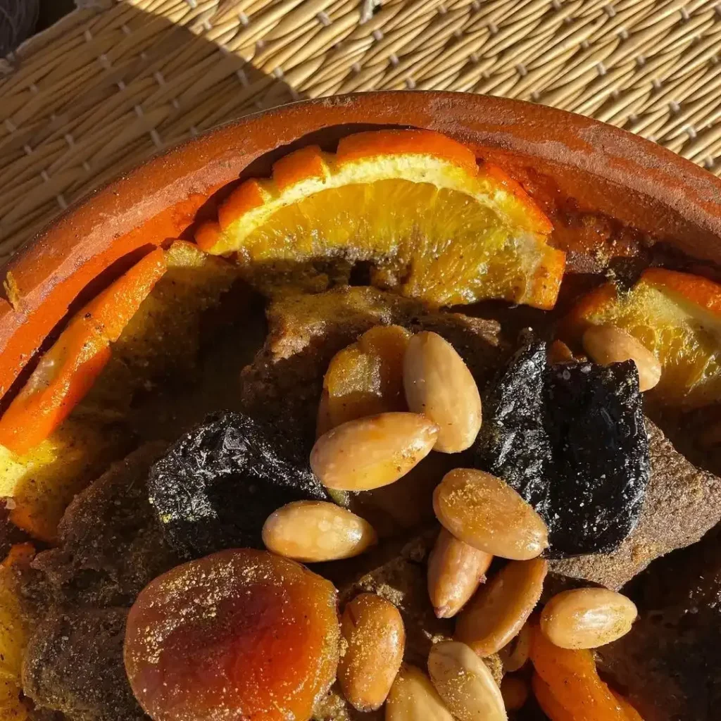 Tajine d’agneau aux pruneaux et amandes : spécialité emblématique du souk semmarine