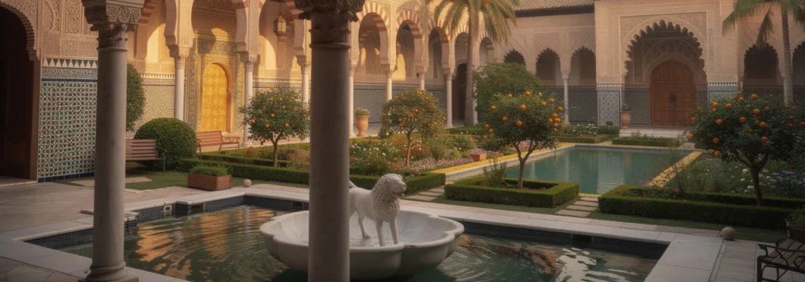 À Séville, l’Alcázar illustre une autre facette du patrimoine mauresque : celle du style mudéjar, né du travail d’artisans musulmans au service de souverains chrétiens. Réaménagé au XIVe siècle par Pierre Ier de Castille sur les bases de l’ancien palais almohade, le Real Alcázar combine ainsi structures gothiques, décor islamique et ajouts renaissants. Ce syncrétisme en fait l’un des ensembles palatiaux les plus raffinés d’Europe.