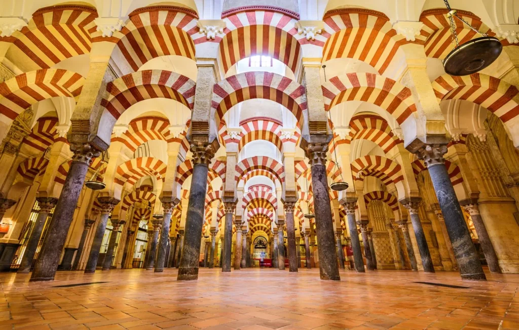 À Cordoue, la Grande Mosquée-cathédrale incarne un autre moment clé du patrimoine mauresque andalou. Fondée à la fin du VIIIe siècle par l’émir omeyyade Abd al-Rahman Ier, puis agrandie à plusieurs reprises jusqu’au Xe siècle, elle devient le manifeste architectural du califat de Cordoue. Ce vaste complexe religieux et politique reflète l’ambition d’égaler, voire de surpasser, les grandes mosquées de Damas ou de Kairouan, tout en intégrant des matériaux et influences locales.