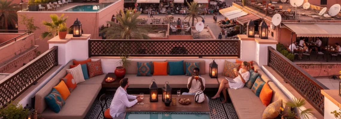 Certains de ces hôtels proposent des formules de day pass ou d’accès extérieur à leurs terrasses, permettant de profiter d’une piscine sur le toit ou d’un espace lounge sans être résident. Cette mutualisation des espaces en hauteur illustre une tendance forte à Marrakech : la terrasse rooftop n’est plus seulement un équipement privé, mais un véritable service urbain, que l’on peut intégrer dès la préparation de son séjour, au même titre que le choix de son tarif pour aller à Marrakech ou la sélection de ses visites culturelles.